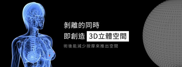 3D立體剝離技術是於手術中利用內視鏡在空間中增加厚度,創造點、線、面的立體弧度,使任何材質、形狀的義乳有絕佳的置放空間,術後少量按摩,即可擁有自然胸型。 本衛教案例實際療程效果因人而異,本資訊無法代替醫師問診,療程效果與風險均以醫師診斷為主。文案中照片僅作為輔助醫師治療說明或衛教資料之輔助圖片,並經當事人簽署授權書同意曝光。 【隆乳手術適應症】:因乳房發育不良、產後萎縮、欲改善胸型者、下垂而需接受乳房整形手術。 【隆乳手術禁忌症】:乳房炎症、患有乳癌而未進行乳房切除術者等。 【隆乳手術可能發生的副作用】:出血血腫、乳頭與乳房皮膚感覺異常、莢膜攣縮、兩邊不對稱、術後感染等情況。